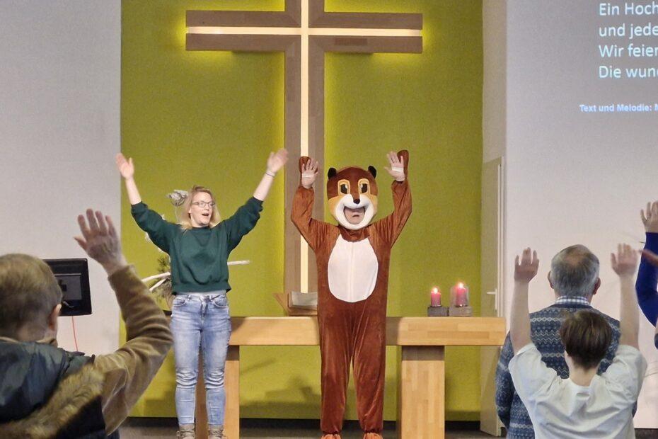 Am ersten Sonntag im Monat mit Kinderprogramm und anschließendem Mittagessen. An allen weiteren Sonntagen können die Kinder im eigenen Kindergottesdienst spielen.