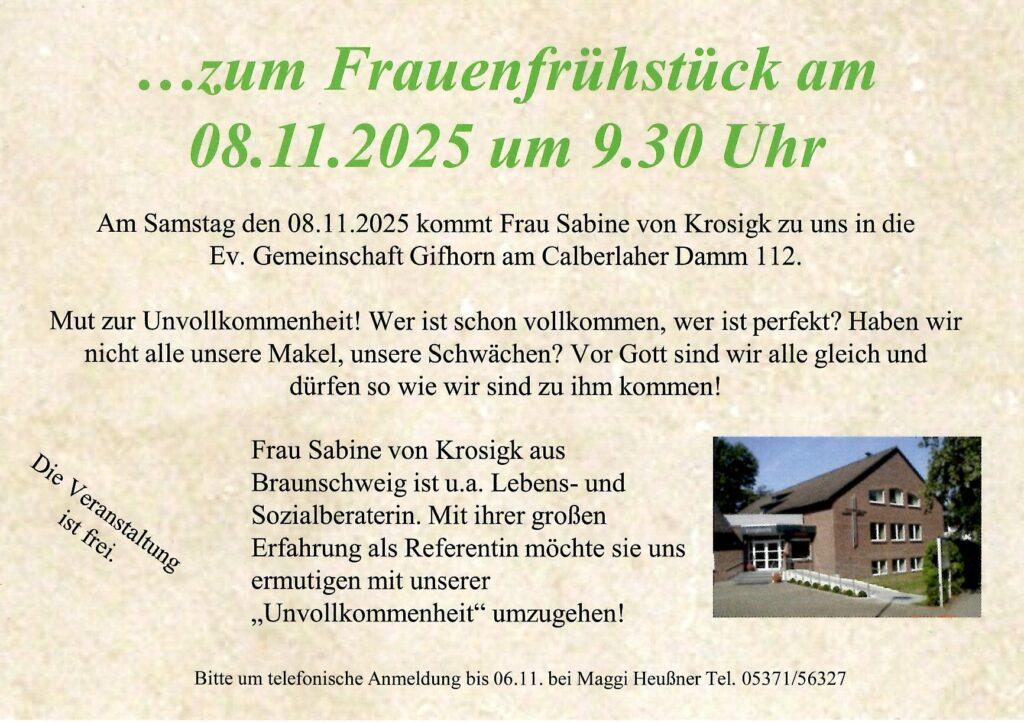 Frauenfrühstück am 08.11.2025 um 9:30 Uhr